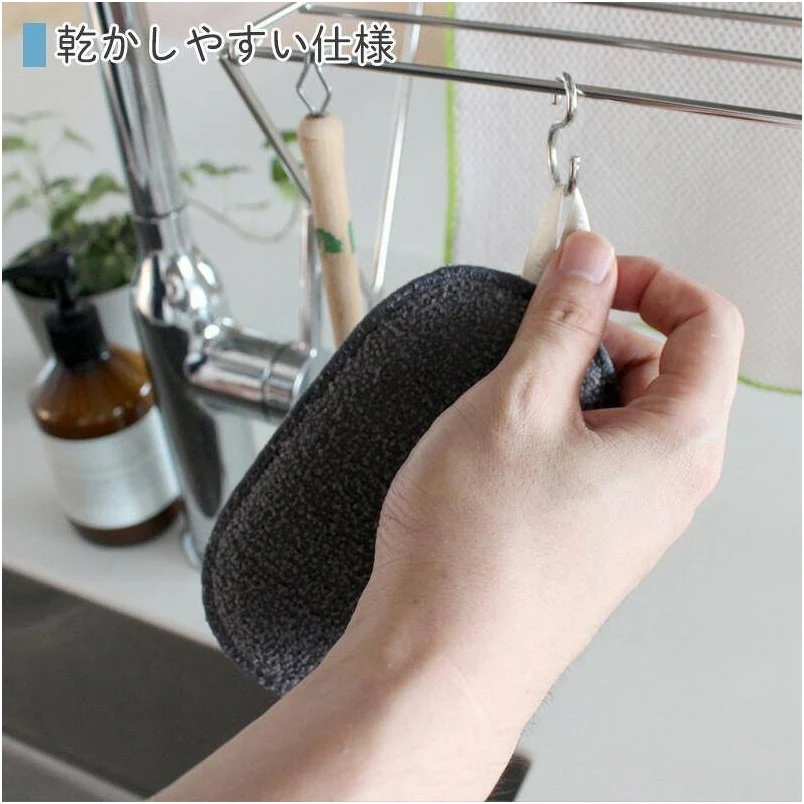 An oval-shaped sponge that makes washing dishes and pots easy!