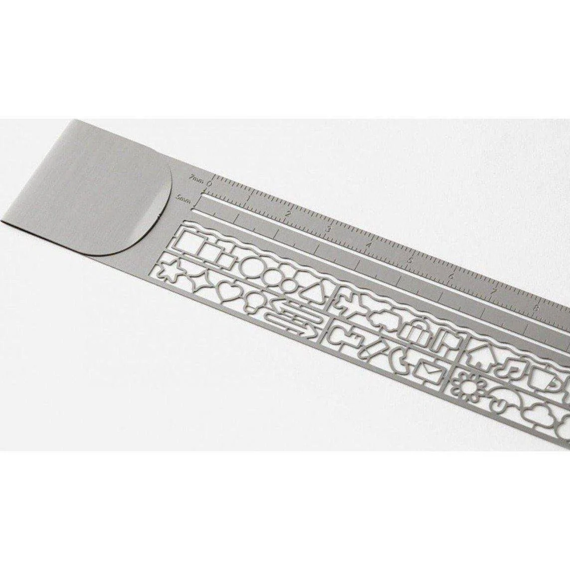 - Functions as a bookmark, 10cm ruler, and 30-template stencil